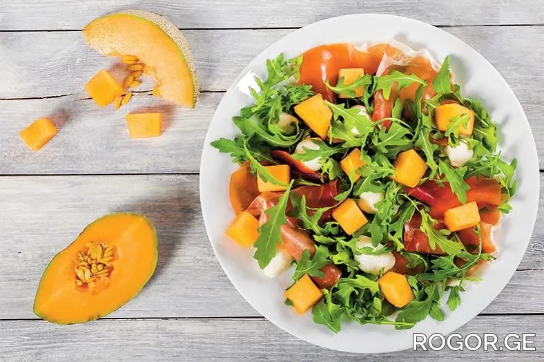 სალათა ნესვით, მოცარელითა და პროშუტოთი