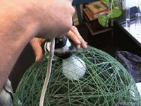 პატრონას ვუმაგრებთ ნათურას და ვათავსებთ სფეროში, შემდეგ ვაფიქსირებთ შიგნით. ამისთვის ვუჭერთ ჭანჭიკებს პატრონაზე. ყველაფერი მზადაა. საჭიროა მხოლოდ შევუერთოთ სადენს და გავანათოთ. ასე ბუშტი გამოვა მსუბუქი და არ გართულდება მისი დაფიქსირება ჭერზე.