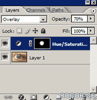 შეცვალეთ ფენის ”ზედდების რეჟიმი” (Blending Mode) Overlay-ზე, ხოლო ”გამჭვირვალობა” (Opacity) დააყენეთ 70%-ზე.