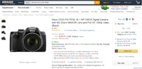 იგივე მოდელის ფოტოაპარატი amazon-ზე. ღირებულება $346.95 (ფასდაკლებულია, ფასდაკლებამდე $449.95) ლარებში ~ 611 GEL (სტატიის დაწერის მომენტში არსებული გაცვლითი კურსით 1$ შეძენა ~1.76 ). აქვე მინდა გითხრათ რომ ამ შემთვევაში კონკრეტული პროდუქტის ტრანსპორტირება ამერიკის ტერიტორიაზე არის უფასო, აქედან გამომდინარე გადახდა მოგიწევთ მხოლოდ საშუამავლო კომპანიისთვის რომელსაც ჩამომტანად აირჩევთ. ხოლო ამ ღირებულებას ემატება განბაჟების ხარჯები, რომლებიც ზემოთ არის აღწერილი. აქვე პროდუქტის მისღებად ლოდინი მოგიწევთ საშუალოდ 10-14 დღე. იხ სურათი.