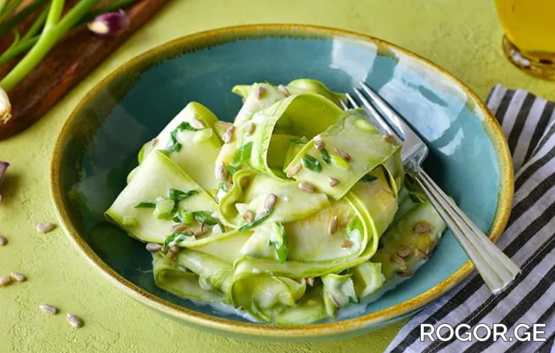 ყაბაყის სალათი ნივრით და მწვანე ხახვით